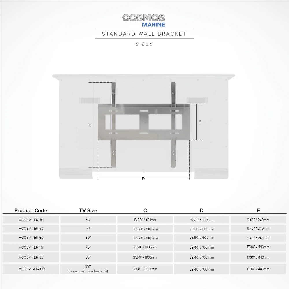 Cosmos Marine TV 100″ (2pcs MCOSMT-BR-100 Brackets)